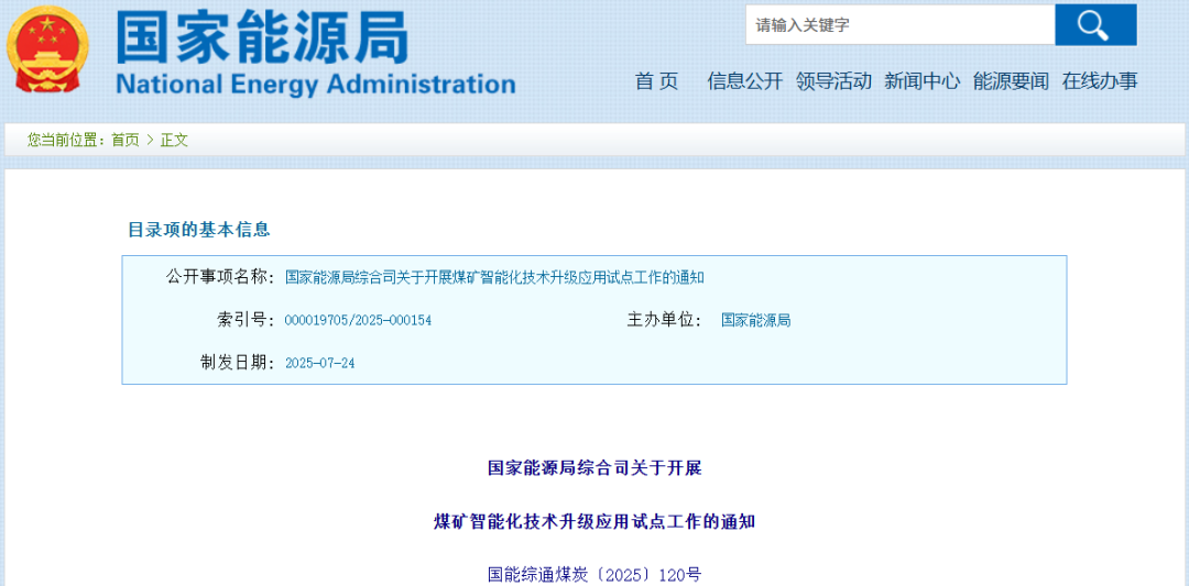 ?7月31日,國家能源局發布《關于開展煤礦智能化技術升級應用試點工作的通知》。其中指出,聚焦煤礦智能化建設重點領域和典型應用場景,升級開展關鍵技術攻關和創新實踐應用,推動建成一批裝備智能控制水平高、生產系統自主穩定運行能力強的典型項目,凝練出可復制、可推廣的煤礦智能化建設方案和運行模式,引領帶動煤礦智能化向更高水平發展,提升行業生產力水平。
